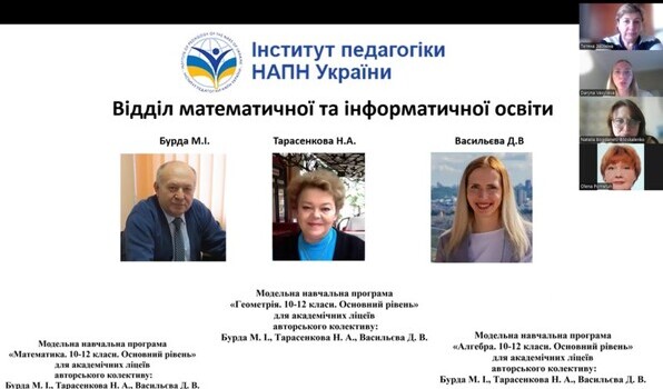 Вчені Інституту презентували проєкти модельних навчальних програм із предметів та інтегрованих курсів обов’язкового освітнього компоненту. Розкрили принципи добору змісту навчального матеріалу і видів діяльності для отримання очікуваних результатів навчання. Серед інноваційних рішень – принципи інтеграції в мовно-літературній, математичній, історичній і громадянській та природничій освітніх галузях; підходи до розроблення навчальних курсів / модулів, якими доповнюються профільні предмети.
